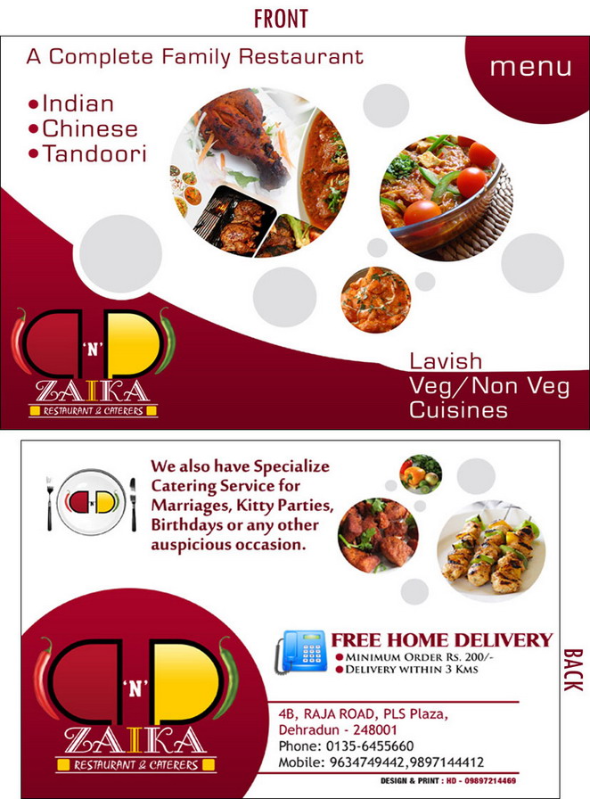 Menu card design for another family restaurant based in Dehradun.
